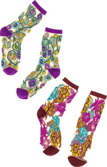 Baroque Botanicals Assorted 2-Pack Sheer Crew Socks