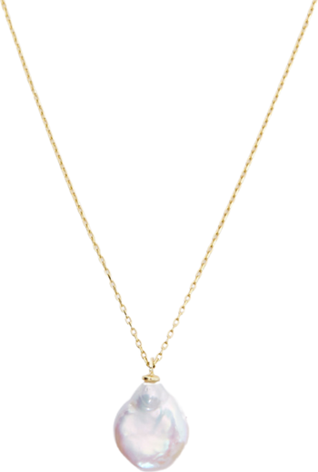 Baroque Flat Pearl Pendant Necklace Sterling Silver
