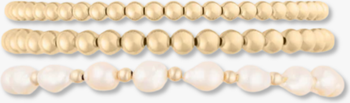 The perfect bracelet stacking set that combines a unique pearl moment with gorgeous everyday gold bead bracelets. Includes a 3mm, 4mm and 5mm 14k gold filled bead bracelet and a genuine baroque pearl bracelet with 3mm 14k gold filled bead, handmade.