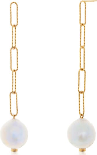 Monica Vinader Baroque Pearl Linear Drop Earrings, Main, color, Yellow Gold
