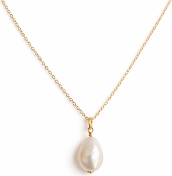 Pearls are imperfect by nature — irregular in shape, luminous in a way that perfectly round pearls aren't. That's exactly what makes them interesting. No two are alike, which means the necklace you receive is the only one like it. Each pearl is approximately 9-13mm and wire-wrapped with a hand-twisted 14k gold fill bail — a small detail that makes a real difference up close. It hangs from a delicate gold fill chain and sits at a length that works for everyday wear or layering. Understated enough to wear to work. Interesting enough that someone will ask about it. Handcrafted in 14k gold fill. Baroque pearl, 10-13mm. Hand-twisted wire bail. Adjustable chain. Lobster clasp. Each pearl varies slightly in shape and size.