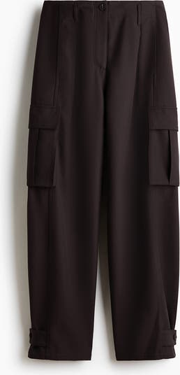 Loose-fit cargo trousers in twill featuring a high waist with a zip fly and button. Pockets in the side seams, welt back pockets and bellows leg pockets with a flap. Barrel legs with a pleat at the front and a buttoned tab at the hems.
