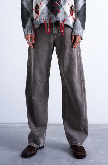 Take your street style up a notch with these barrel-leg jeans fashioned from sturdy nonstretch denim.