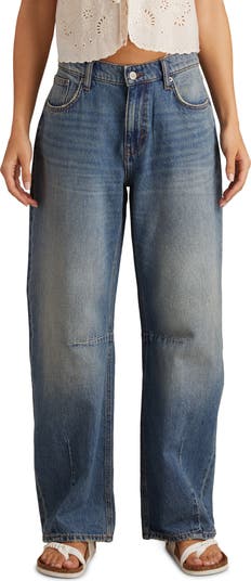Trend-savvy barrel-leg styling defines these nonstretch-denim jeans in a perfectly faded finish.