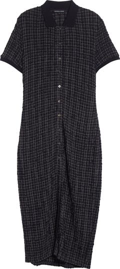 Retro checks pattern this softly textured shirtdress made with easy buttons along the front and a contrasting collar.