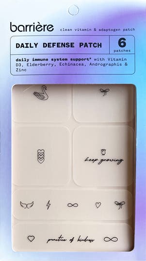 This pack includes 6 vitamin & adaptogen patches for daily immunity support with Vitamin D3, Elderberry, Echinacea, Andrographis, and Zinc. Patches are made in clear recyclable PET with minimal hand drawn motifs in black. Each patch delivers vitamins trans dermally through the skin and directly into the bloodstream for increased absorption compared to pills. The sustained release of ingredients takes place over 8-12 hours, and each patch offers instant benefits and results. Just one patch a day is sufficient to deliver vitamins you are looking for without any fillers or questionable ingredients.