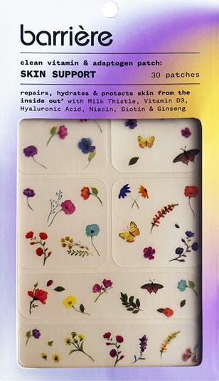 This pack includes 30 vitamin & adaptogen patches that repair, hydrate, and protect skin from the inside out with Hyaluronic Acid, Milk Thistle, Niacin, Vitamin D3, Ginseng, and Biotin. Patches are made in clear recyclable PET with multicolor watercolor wildflowers. Each patch delivers vitamins trans dermally through the skin and directly into the bloodstream for increased absorption compared to pills. The sustained release of ingredients takes place over 8-12 hours, and each patch offers instant benefits and results. Just one patch a day is sufficient to deliver vitamins you are looking for without any fillers or questionable ingredients.