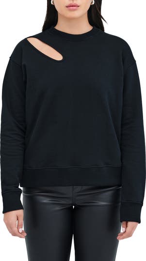 An unexpected oval cutout allows a fashion-forward glimpse of skin in this stretch-enhanced French terry sweatshirt.