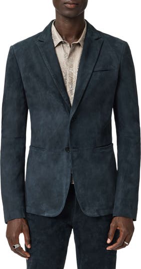 A distressed finish brings a luxe but lived-in look to this suit jacket made with all the classic details.