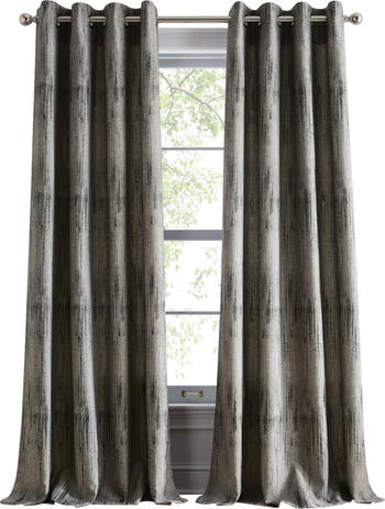 Set the stage for sophistication with these room-darkening curtain panels made from jacquard-woven fabric with a dramatic pattern in moody black-and-silver hues.