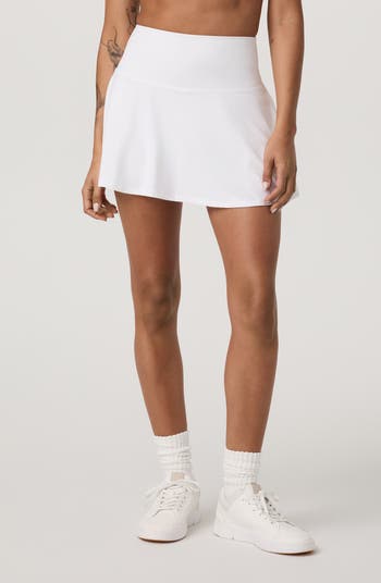 Moisture-wicking technology keeps you dry and comfortable in this court-worthy skirt popped with built-in shorts featuring a stay-put rubber trim and dual pockets for tennis balls and essentials.