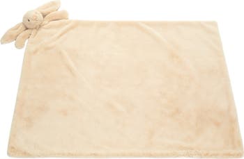 A sweet and irresistibly soft bunny hugs the corner of this soft fleece blanket that's perfect for helping soothe your little one while providing cozy warmth.