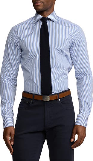 Crisp stripes distinguish this Italian-crafted button-up shirt cut from two-ply cotton poplin and refined with mother-of-pearl buttons.