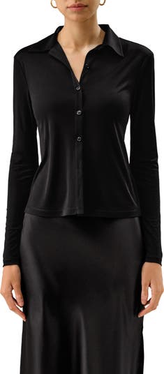 Elevate your everyday style with this luxurious shirt, designed for both comfort and sophistication. Crafted from high-quality silk jersey, the fabric offers a luxuriously soft, breathable, and skin-friendly feel, ensuring all-day comfort. The sleek, professional silhouette enhances your natural lines, while the subtle tailoring creates a flattering, contoured fit. Shell button detailing adds a refined touch, making it perfect for layering under blazers or suits for a polished look. Lightweight yet substantial, this shirt is a versatile, timeless piece that transitions seamlessly from casual outings to semi-formal events. Size up for a more relaxed fit.