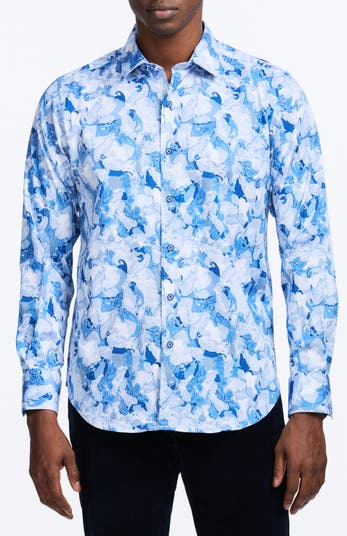 Tailored from crisp cotton and in washed in a sea of paisleys and koi fish, this shirt features a touch of stretch and pops of contrast that show when you unbutton the collar and roll up the cuffs. Wear it tucked or untucked to go from smart to casual without ever sacrificing your style.