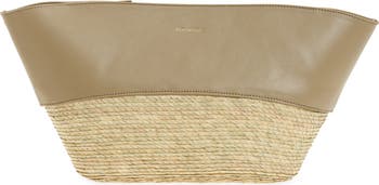 Simple, spacious and sleek, the Basket Clutch takes silhouette cues from the brand's popular totes and is made with a woven base and a branded leather top band.