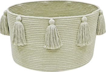 Generous storage basket with 9 tassels. Made of braided cords of recycled PET bottles covered with cotton in our bestselling colors.