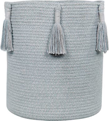 Inspired by the ever-changing tones of nature, the round Woody basket is crafted from mixed cotton cords, blending two color shades for a unique, natural look. Available in Honey, Olive, Pearl Blue, Soil Brown and Vintage Nude, each basket is finished with handcrafted, multicolored tassels attached along the edge.