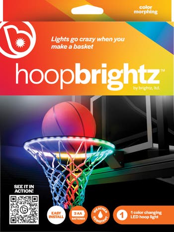 Light up a game of HORSE with this string of color LED lights designed to fit around the rim of your basketball hoop. The color-morphing LED lights bring a dazzling light show to the court every time you score.