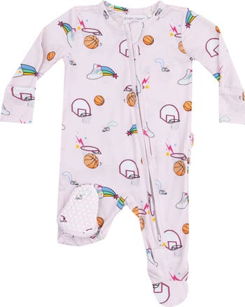 Keep your future athlete comfy in this ruffled long-sleeve footie made from soft jersey and secured by a two-way front-zip closure for easy changes. Optional fold-over cuffs help prevent scratches, while grippy feet offer light traction.