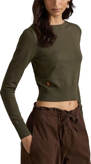 This slim-fit sweater is knit from a lightweight cotton blend with a hint of stretch, offering soft comfort and a flattering, streamlined silhouette. A graceful neckline and signature embroidered pony at the waist add polished, iconic appeal to this everyday essential.