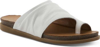 A stylish toe loop and gathered leather upper add stunning dimension to an easy slide sandal grounded by a contoured footbed and grippy sole.
