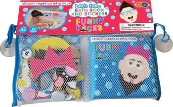 BATH TIME: BATH BOOK & STICKERS - COLOR CHANGING FUNNY FACES - Turn bath time into a magical sensory adventure with the Buddy & Barney Funny Faces Color Changing Bath Book & Stickers! This innovative color-changing bath book features silly faces that come to life and change color when wet, engaging toddlers in a fun, interactive play experience. Paired with matching bath stickers, children can create their own funny characters right on the bathtub or tiles, inspiring creativity and storytelling during every splash. Crafted from durable, non-toxic, and BPA-free waterproof materials, this bath book and sticker set is safe for little hands and mouths, providing peace of mind for parents. Its compact design fits perfectly in tiny hands, promoting independent play while supporting tactile development and hand-eye coordination. Easy to clean and quick to dry, this bath time companion is built to last through countless water-filled adventures. Whether as a gift for birthdays, holidays, or everyday fun, this set combines education and entertainment in a unique, screen-free way that kids love. INCLUDES: 17 Foam Pieces, 1 Bath Book, and 1 Mesh Storage Bag.