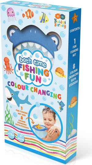 BATH TIME: FISHING FUN - Dive into endless underwater adventures with the Buddy & Barney Bath Time Fishing Fun set! Perfect for little fishermen and fisherwomen, this engaging bath toy includes a fun shark fishing net and 8 colorful, color-changing sea animal bath stickers. Kids can stick the vibrant creatures to the tub or tiles, then fish them out of the water, sparking imagination and interactive play during bath time. The color-changing feature adds an extra surprise, keeping little ones excited to see the magic happen with every catch. Children can even invent their own fishing games, boosting creativity and problem-solving skills. Made from quality, non-toxic, and BPA-free materials, these reusable bath stickers cling securely to smooth surfaces when wet and can be effortlessly removed and repositioned, making cleanup quick and easy. Ideal for babies and toddlers, this set encourages learning, sensory exploration, and hours of splashy fun. It’s a fun gift for birthdays, holidays, or any time you want to make bath time magical. INCLUDES: 8 Foam Pieces and 1 Fishing Net.