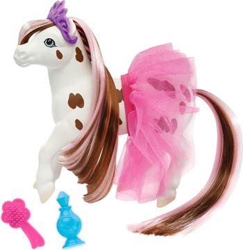 - Kids will love dressing her up and brushing her mane and tail.Color change: spray blossom with warm water to reveal surprise pink spots.