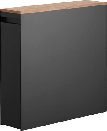 Store your bathroom essentials in this handsome steel and wood storage unit with a roll-out drawer to keep everything you need easily accessible and out of sight.