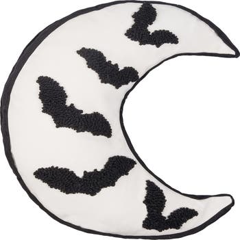 - Featuring elegant bat motifs against a crescent moon shape, this 18" x 18" accent pillow adds festive seasonal charm. Its eye-catching design makes it a standout piece that enhances fall and autumn décor in any space.