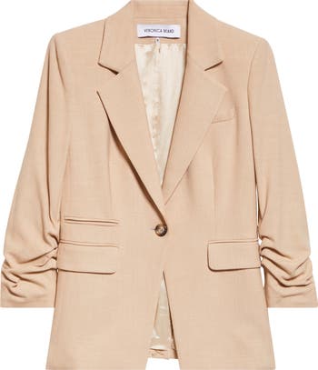 Permanently pushed-up sleeves add a casual vibe to a supersoft jacket cut in a classic silhouette.