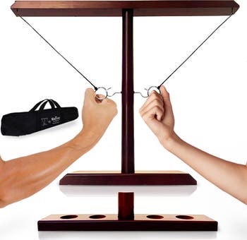 - BRING THE FUN ON THE RUN – A canvas carrying case is included, so the fun never ends. Take this ring and hook battle game to the next party, lake house, poolside, or anywhere with a table. When you're done, pack it away and store it in seconds.