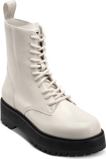 A hardy platform and lug sole up the height and the edge of this combat-inspired boot sealed with a side zipper for added ease.