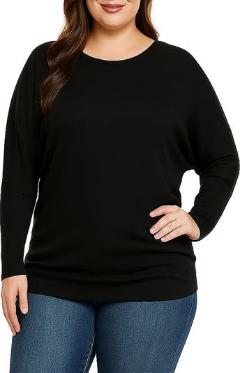 Slouchy batwing sleeves further the relaxed aesthetic of this drapey tunic top cut from a finely textured knit with a soft feel you'll love all weekend long.