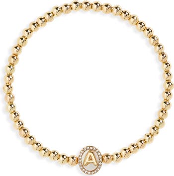 A sparkling initial pendant forms a stunning focal point for this goldtone-plated bead bracelet that's great for gifting.