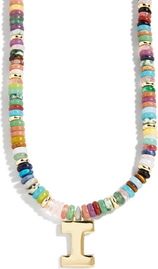 Faceted beads in rainbow hues colorfully animate a personalized necklace anchored with a gleaming initial pendant.