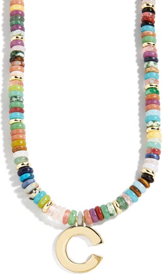 Faceted beads in rainbow hues colorfully animate a personalized necklace anchored with a gleaming initial pendant.