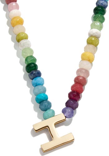 Faceted beads in rainbow hues energize a personalized necklace anchored with a gleaming initial pendant.