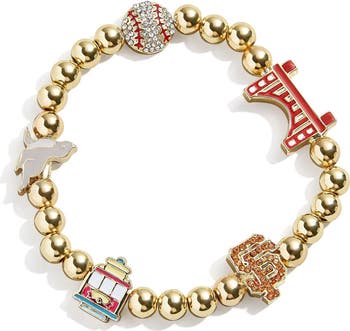 This San Francisco Giants Localized Pisa bracelet from BaubleBar is the perfect finishing piece for your game day getup. It features multiple enameled charms reflecting the local culture. The stretchable band makes this San Francisco Giants bracelet an easy-to-wear fan accessory.