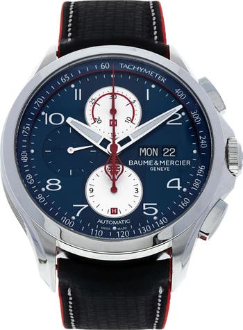 Baume & Mercier Preowned 2017 Clifton M0A10343 Automatic Leather Strap Chronograph Watch, 44mm