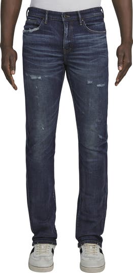 Distressed detail and light fading bring lived-in attitude to these straight-leg jeans made with a touch of stretch to keep you comfortable.