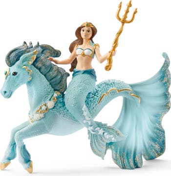 - A STORYTELLING WORLD OF MAGIC & WONDER: The Mermaid Eyela Riding Underwater Horse playset from Schleich is carefully designed to inspire safe and creative pretend play for children as both a single toy or part of a larger collection.PART OF AN ENCHANTED WORLD: Mermaid Eyela Riding Underwater Horse is part of the bayala® collection of figurines and playsets from Schleich. Great for gifting, this playset can stand alone or fit into a larger, modular play world.