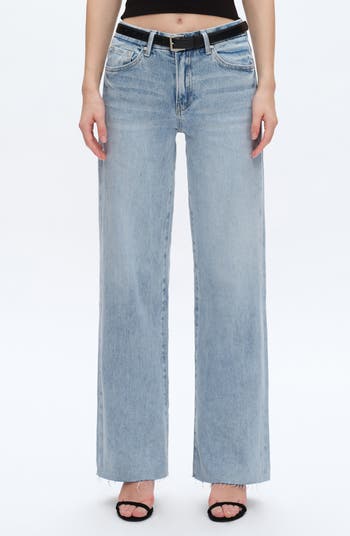 A faded indigo wash lends a playful feel to retro wide-leg jeans made with a high waist and soft, low-stretch denim.