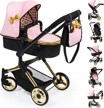 Bayer Pram Neo Vario - Pink, Black, Gold - Accessory for Dolls Up to 20", Shoulder Bag, Converts to Stroller, Kids Toy, Ages 3+ | baby d