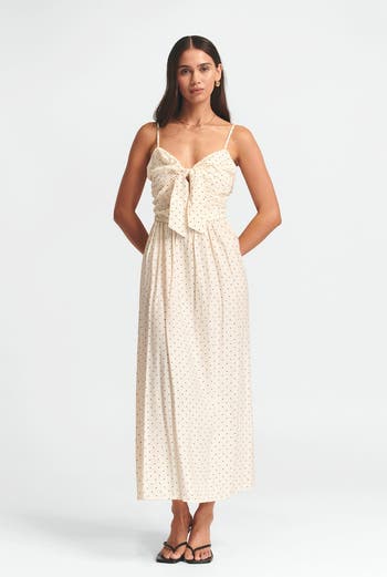 The Baylen Midi Dress By ST MRLO Is A Woven Midi-Length Dress That Captures Effortless Summer Elegance. Delicately Crafted With A Charming Polka Dot Print And A Feminine Bow Detail At The Bodice, This Dress Offers A Romantic And Relaxed Silhouette Perfect For Warm-Weather Occasions. Its Soft, Flowing Design Creates An Understated Yet Sophisticated Look That Transitions Beautifully From Daytime Wanderings To Evening Gatherings.