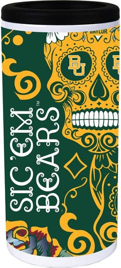 Keep your beverage of choice deliciously cold for hours and your Baylor Bears spirits high with this Dia Slim stainless steel can cooler. It features calavera graphics reminiscent of Dia de Los Muertos to provide a unique spin on your Baylor Bears fandom. A sealed rim ensures your favorite beverage stays secure and condensation-free.
