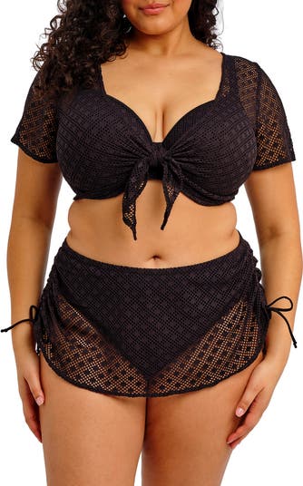 Layer your beachy look with this sheer mesh cover-up top that ties in the front and has plenty of stretch for an easy fit.