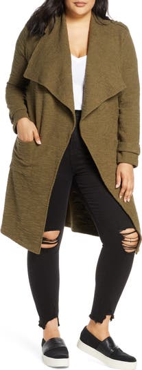 A knit bouclé fabric brings rich texture in this long, open-front topper that's left unlined for a more relaxed, unstructured fit.