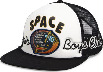 Top off your look with the label's futuristic aesthetic with this classic trucker hat featuring logo embroidery and space-age graphics.